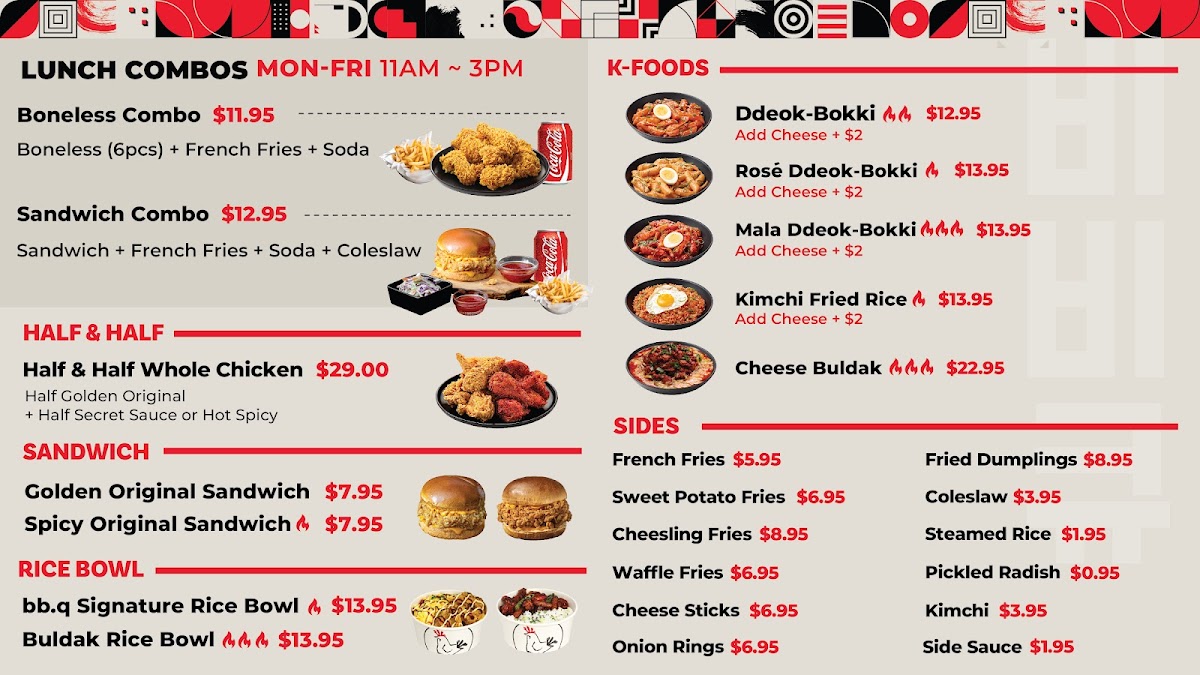 The menu at bb.q Chicken North Quincy offers a focused selection of Korean-style fried chicken and complementary dishes that fit perfectly into a casual dining experience. Whether you’re stopping by for a quick lunch, a relaxed dinner, or a shared meal with friends, the menu combines comforting bites with vibrant, familiar flavors.